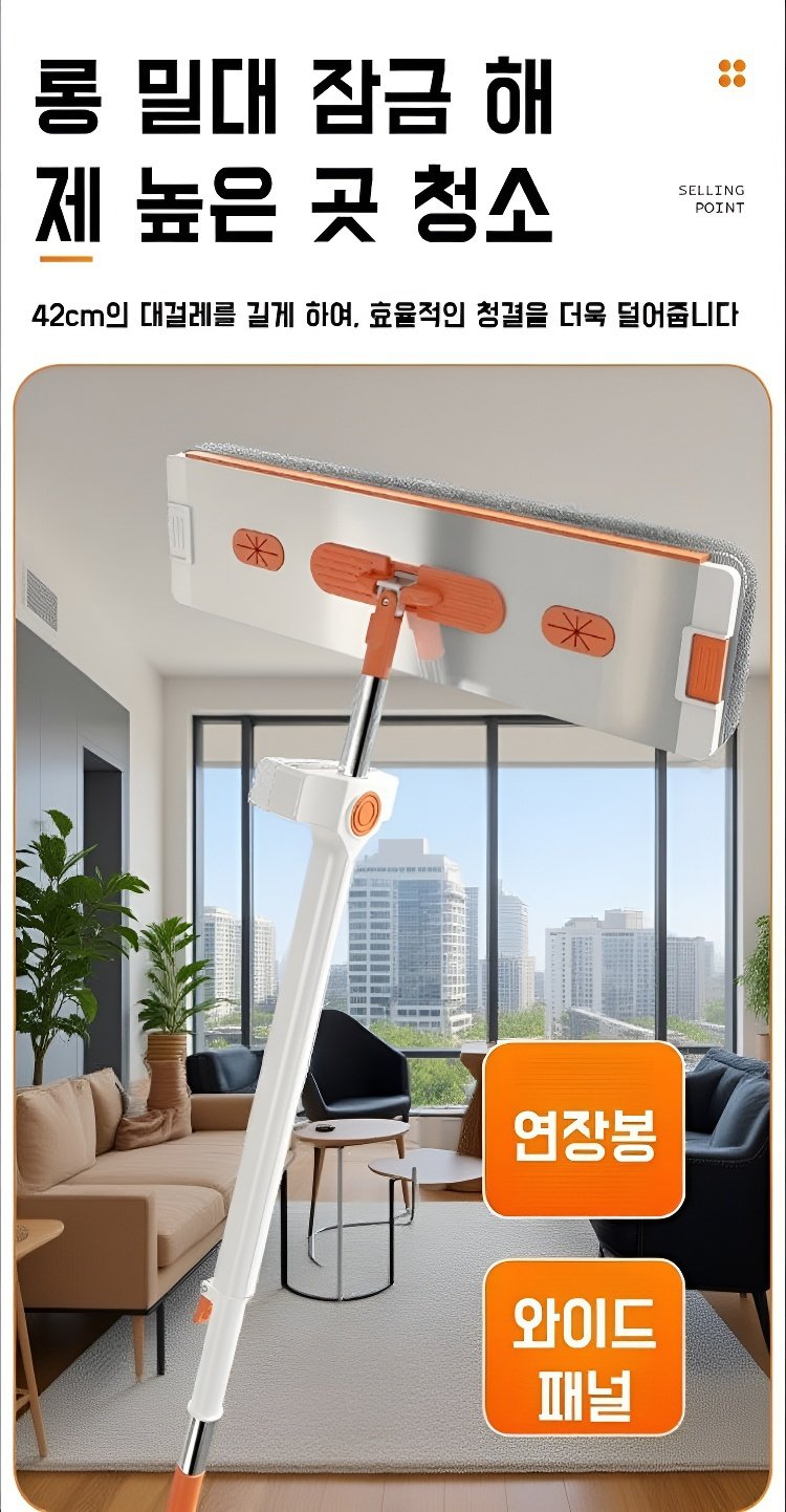 가정용 플랫 밀대 원터치 건습 겸용 손세탁 알루미늄 합금 허리 굽히지 않는 밀대